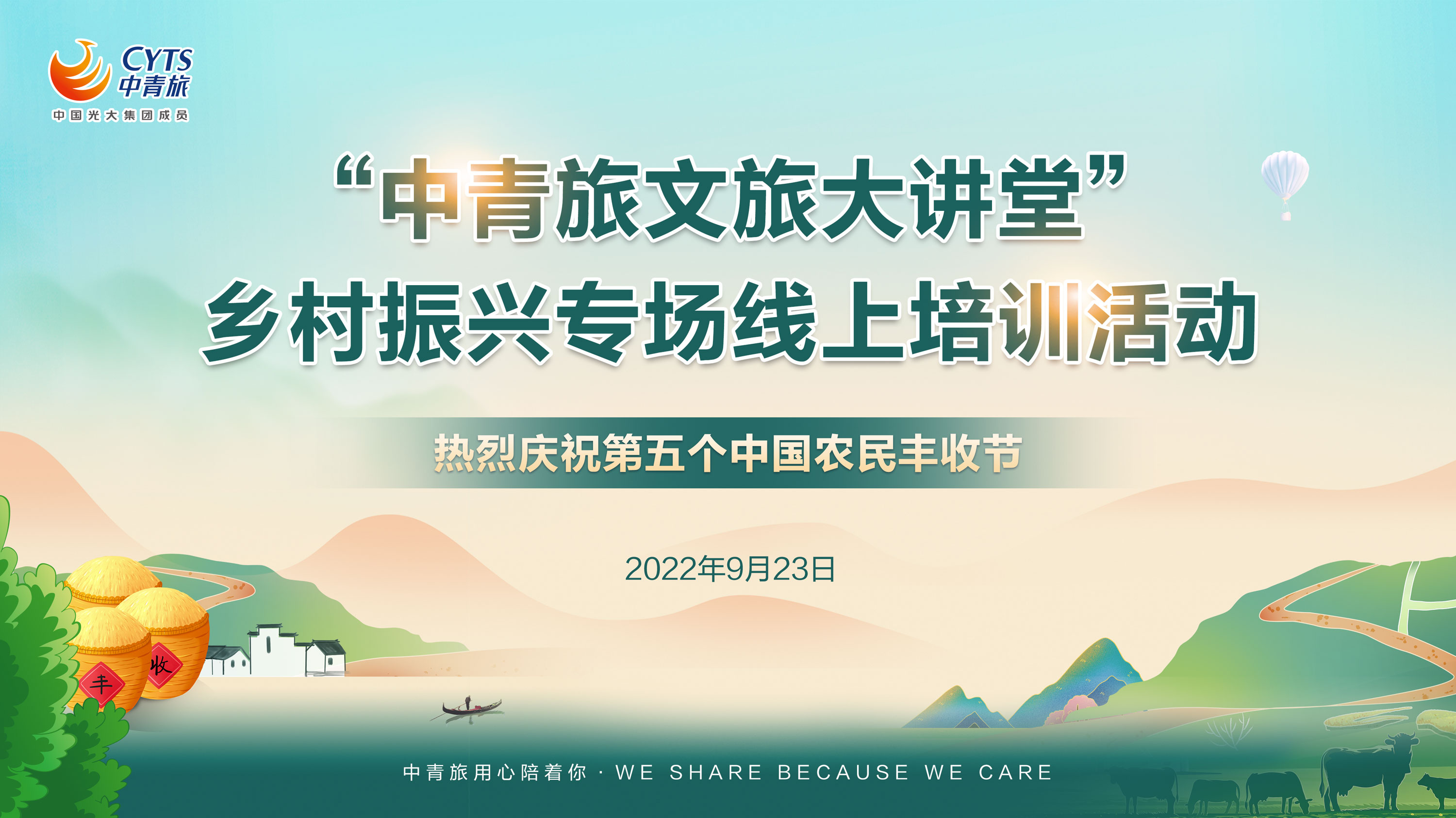 中国光大集团成员|2019世园会全球合作伙伴|品质生活系统提供者丰收节里话振兴:中青旅文旅大讲堂乡村振兴专场培训正式开班2022/9/26